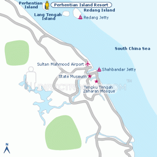 Poloha: Hotel se nachází na souostroví Pulau Perhentian Besar, v zátoce Teluk Puah s výhledem na ostatní ostrovy, je zde pláž s bílým pískem a krásně tyrkysovou vodou. Do hotelu se lze dostat na motorovém člunu za asi 45 min z pevniny.